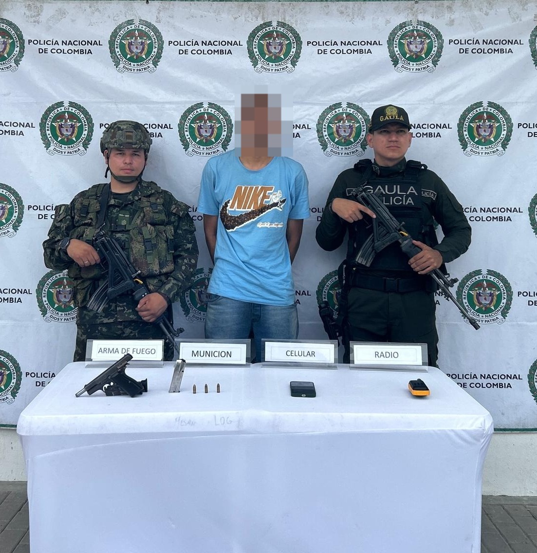 Santa Marta D.T.C.H. En el marco del Plan Cazador, la Policía Nacional en Santa Marta, a través del grupo GAULA, en coordinación con el Ejercito Nacional, logra la captura en flagrancia de alias “Berna”, presunto integrante del grupo armado organizado Autodefensas Conquistadores de la Sierra, por el delito de fabricación, porte o tenencia de armas de fuego.