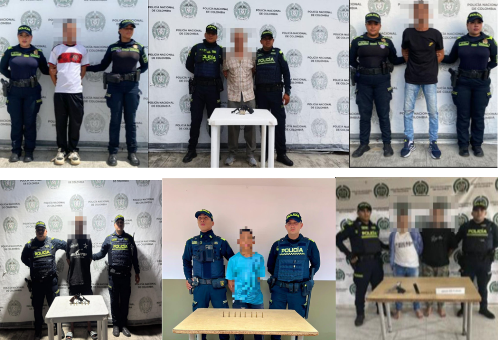 uniformados del Modelo Nacional de Servicio de Policía, capturaron 5 personas en flagrancia en diferentes procedimientos por el delito de porte ilegal de arma de fuego y municiones en Santa Marta y el municipio de Ciénaga.