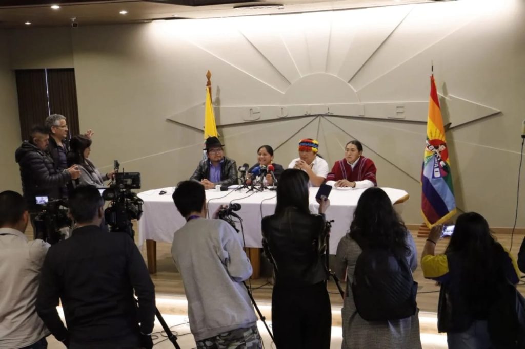Tras el resultado del referéndum y consulta popular del 16 de noviembre en Ecuador, representantes de la Confederación de Nacionalidades Indígenas del Ecuador (CONAIE), la Confederación de Pueblos de la Nacionalidad Kichwa del Ecuador (Ecuarunari) y sus estructuras realizaron una rueda de prensa para analizar el triunfo del NO.
