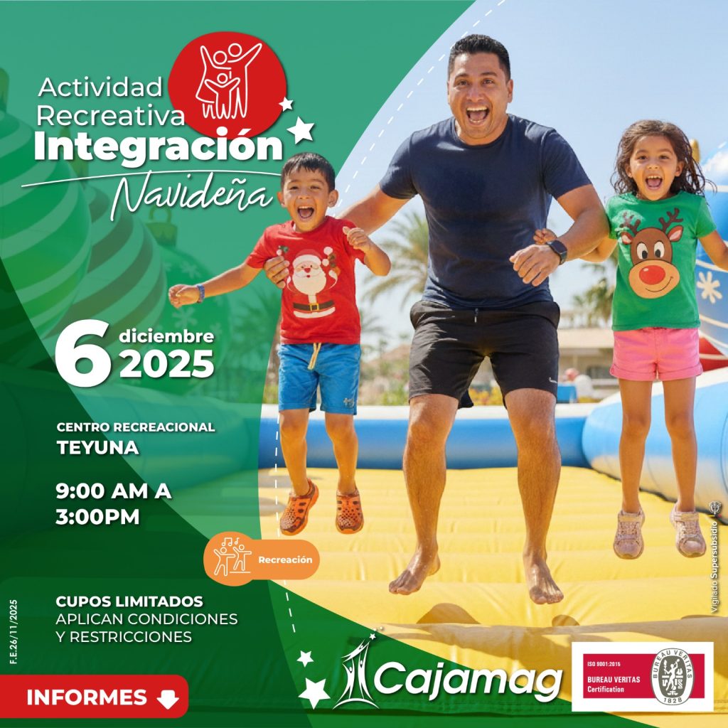 La Navidad llega adelantada a Santa Marta y Cajamag quiere que nadie se quede por fuera. La Oficina de Recreación anunció la realización de su Integración Navideña 2025, un evento que busca reunir a las familias afiliadas en una jornada llena de diversión, creatividad y actividades al aire libre en el Centro Recreacional Teyuna, uno de los espacios emblemáticos de la caja de compensación.