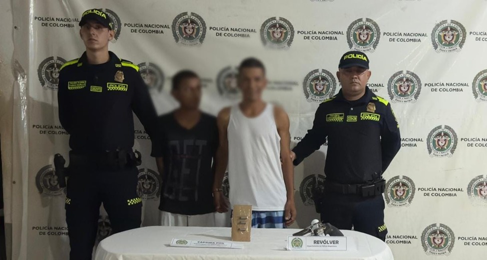 El Banco, Magdalena. En el barrio Santa Rosa de este municipio, fueron capturados dos hombres y se incautó un revólver calibre 38 con munición, tras una rápida reacción de la patrulla de Policía y unidades militares que realizaban patrullajes mixtos.