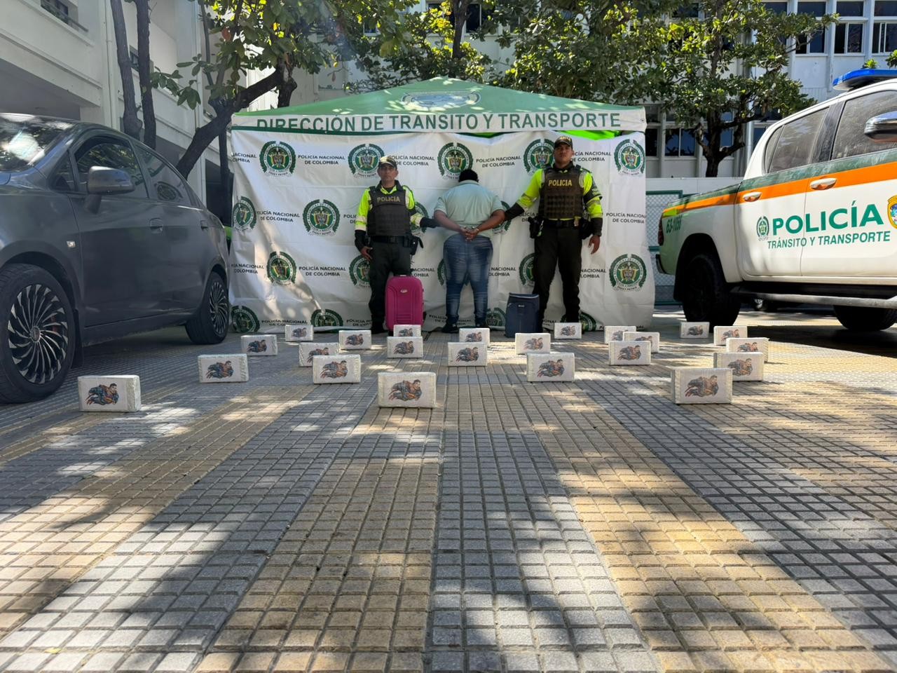 El operativo se desarrolló en el sector de Neguanje, donde los uniformados interceptaron un vehículo particular en el que se movilizaba el ciudadano. Al realizar registro y control, fueron halladas dos maletas que contenían 26.000 dosis de clorhidrato de cocaína.