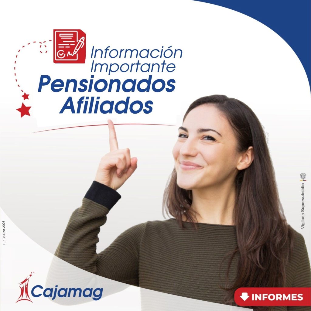 La Caja de Compensación Familiar del Magdalena – CAJAMAG informa a sus pensionados afiliados que, con el fin de mantener actualizada la información registrada en su base de datos, se requiere la remisión de copia del comprobante de pago correspondiente a la mesada del mes de enero de 2026, en el cual se evidencie el valor recibido.