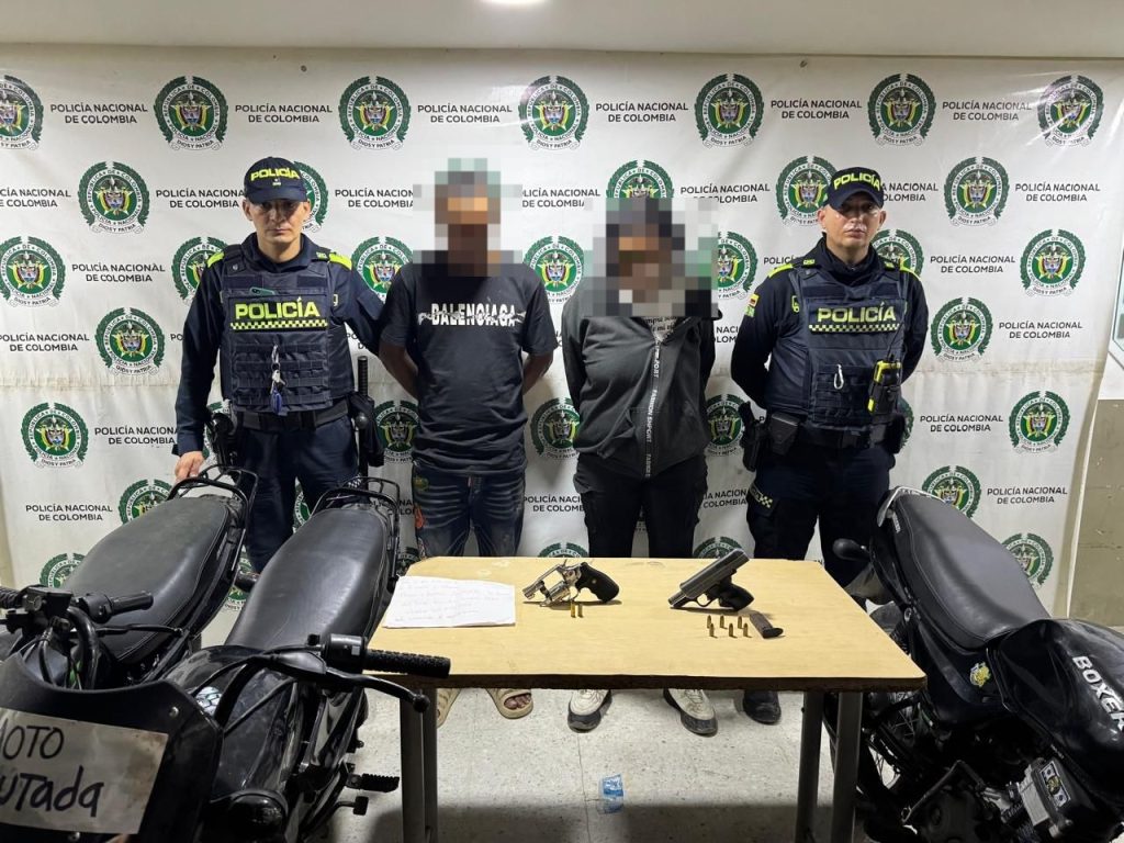 El primer procedimiento se llevó a cabo gracias al oportuno llamado de la ciudadanía y a la rápida reacción de los uniformados del Modelo del Servicio de Policía Orientado a las Personas y los Territorios, quienes lograron la captura de dos personas por el delito de porte ilegal de armas de fuego y municiones.