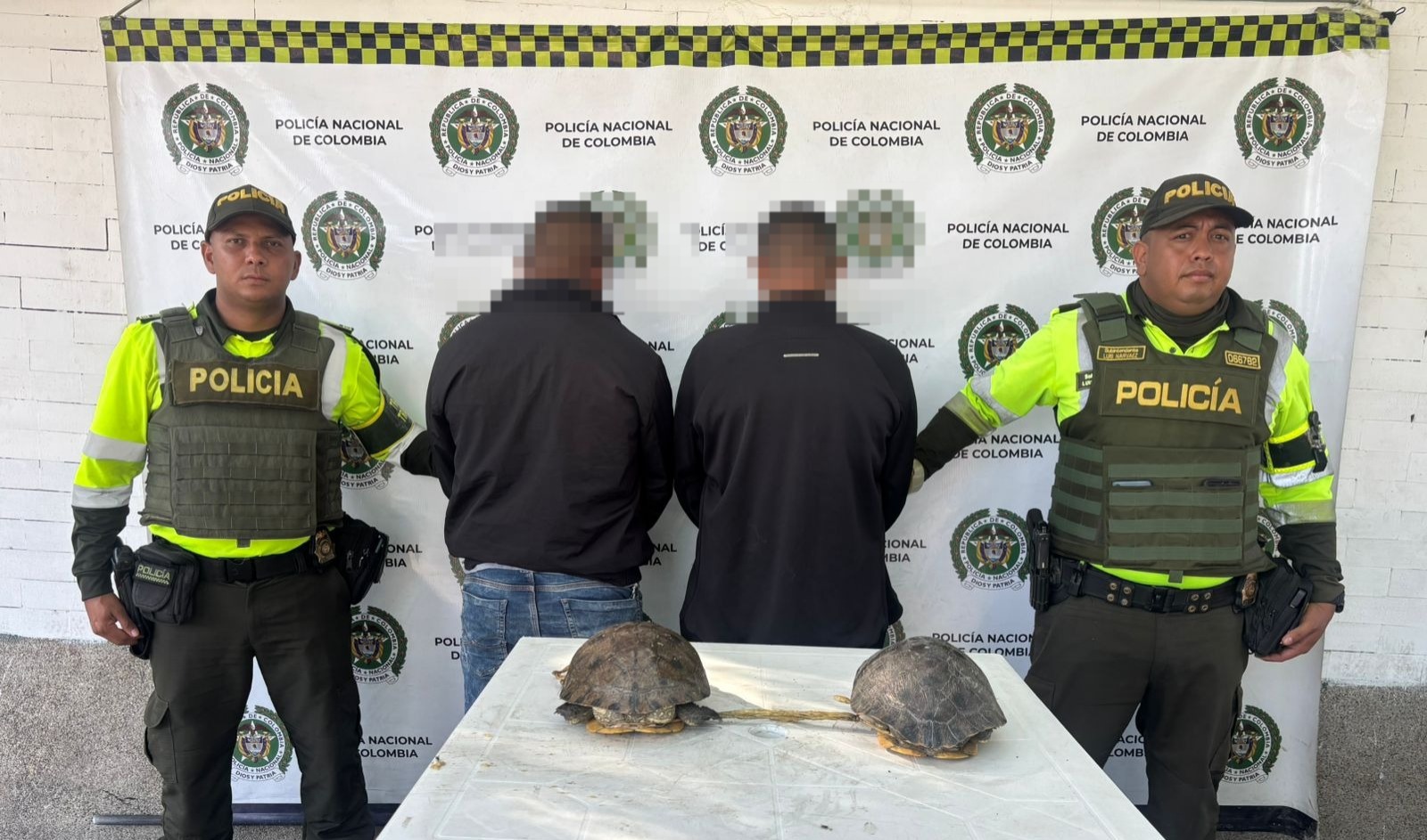 Posteriormente, en el desarrollo de las mismas acciones, fueron interceptados dos hombres que transportaban dos (02) hicoteas de la misma especie, sin contar con los permisos ambientales requeridos para su tenencia o movilización.