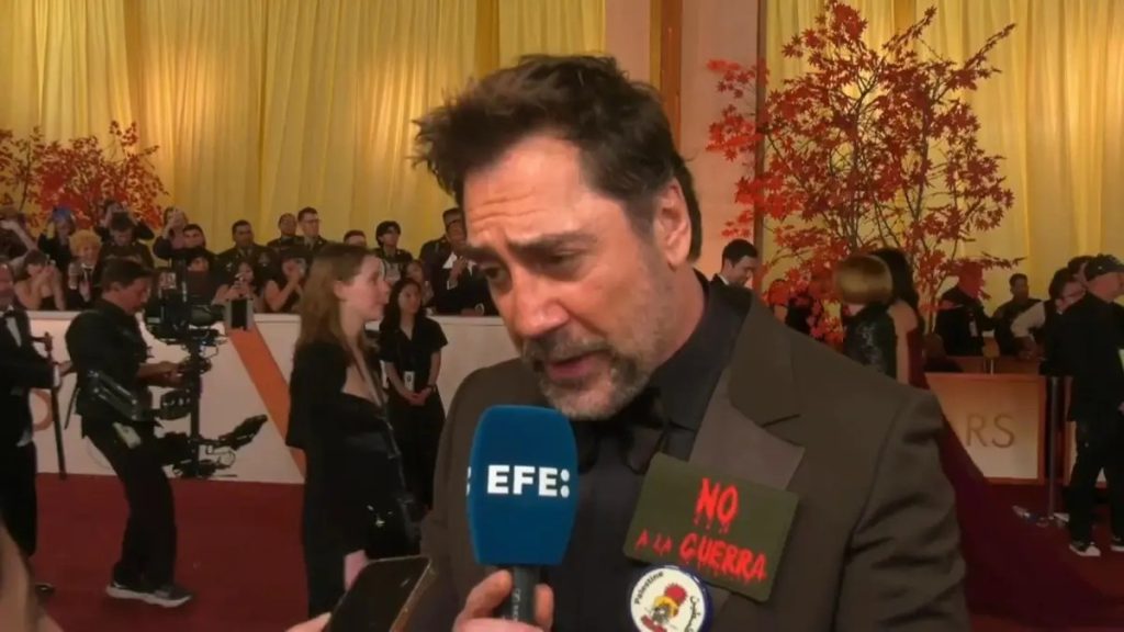 Bardem, quien portaba la misma pegatina “No a la guerra” que usó en 2003 durante la invasión a Irak, declaró a su llegada al teatro Dolby de Los Ángeles, donde estaba encargado de entregar un premio, que la actual guerra en Oriente Medio es “ilegal” porque está “basada en mentiras”.
