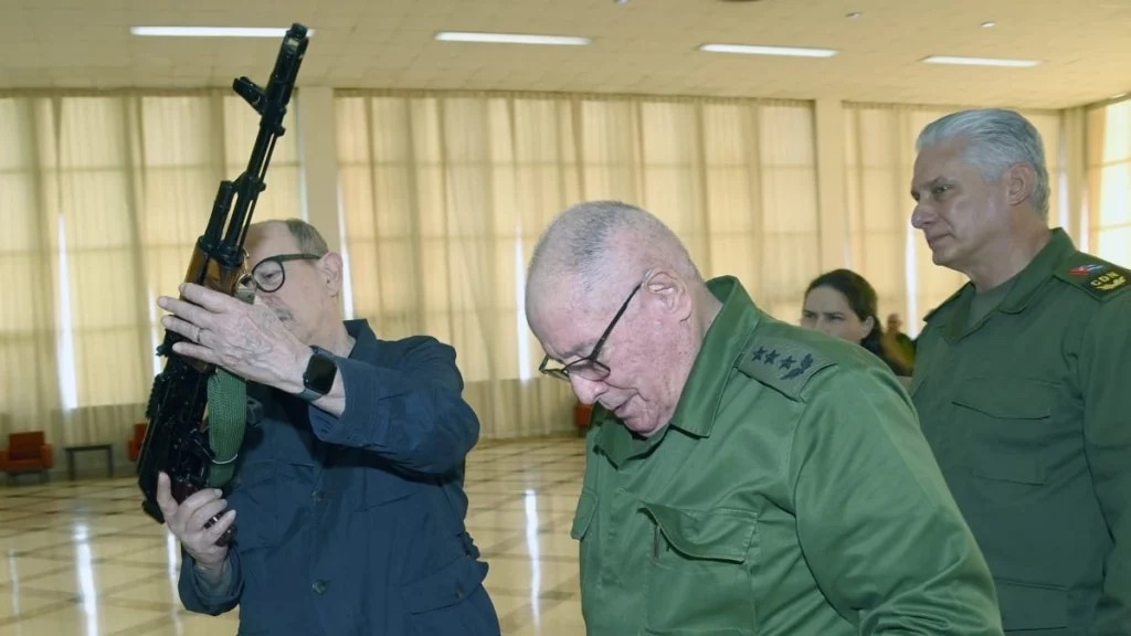 En medio de las constantes amenazas de Trump de «tomar Cuba» o, como dijo alguna vez, «entrar y destrozarla», este viernes el cantautor Silvio Rodríguez recibió una réplica del fusil Kaláshnikov en reconocimiento a su patriótica disposición de empuñar las armas para defender la tierra que lo vio nacer.