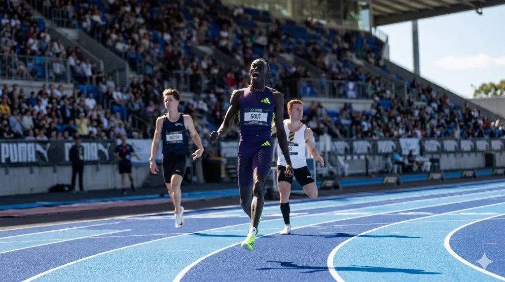 La carrera en Sídney fue de un nivel técnico excepcional. Aidan Murphy, de 22 años, escoltó a Gout con un tiempo de 19.88 segundos. Ambos corredores se convirtieron en los primeros australianos en bajar de la barrera de los 20 segundos con viento regular, rompiendo el récord nacional que el propio Gout había fijado en 20.02 el año anterior en Ostrava.